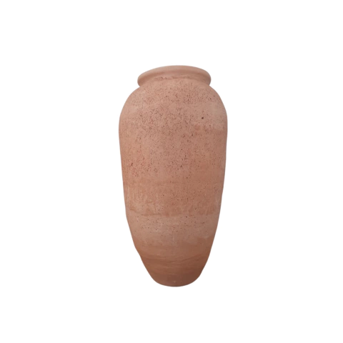 Vaso em cerâmica natural, com acabamento artesanal que evidencia as variações e nuances próprias do barro. Seu design clássico em formato alongado valoriza ambientes internos e externos, trazendo uma atmosfera rústica e acolhedora. Ideal para composições com plantas secas, folhagens tropicais ou simplesmente como peça decorativa isolada, destacando sua textura e cor terrosa.